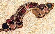 Une anse , or et fil perlé en bordure, provenant de la nécropole princière d'Apahida (Transsylvanie), Musée national de Bucarest. |